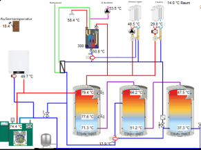 3 x Erdgas Dachs zur Grundlastabdeckung + Spitzenlastkessel mit 2*50 kW