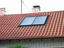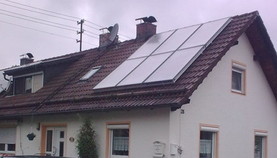 Sonnenhaus mit 60m² Winkler IndachKollektor als Sonderkollektor mit Schrägschnitt an Wiederkehre